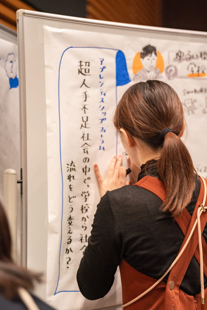 「働きながら学ぶ」という選択、アプレンティスシップ。日本での実例は少ないものの、いまの日本でこそ必要とされているのでは、と日本版アプレンティスシップの可能性を考えるべく、有識者の講演や実証事業の紹介、ワークショップなどが行われました。